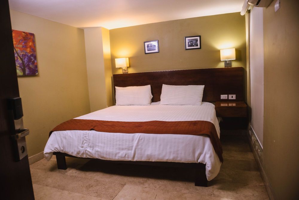Habitación Estándar con 1 cama King size, capacidad máxima 2 personas, aire acondicionado, pantalla con servicio de T.v. por cable, internet inalámbrico, agua caliente las 24 hrs. del día, artículos de higiene personal.