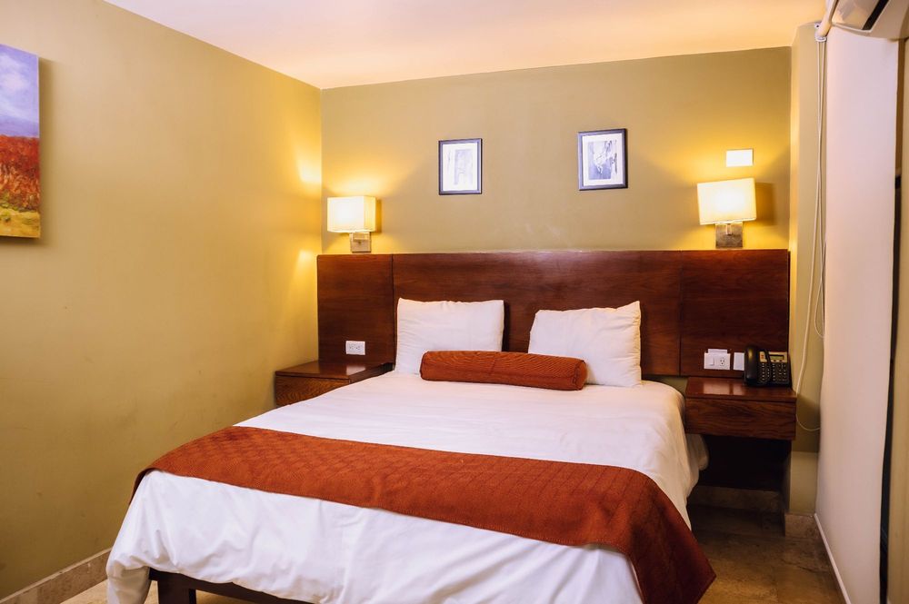 Habitación Estándar con 1 cama matrimonial,capacidad máxima 2 personas aire acondicionado, pantalla con servicio de T.v. por cable, internet inalámbrico, agua caliente las 24 hrs. del día, artículos de higiene persona.